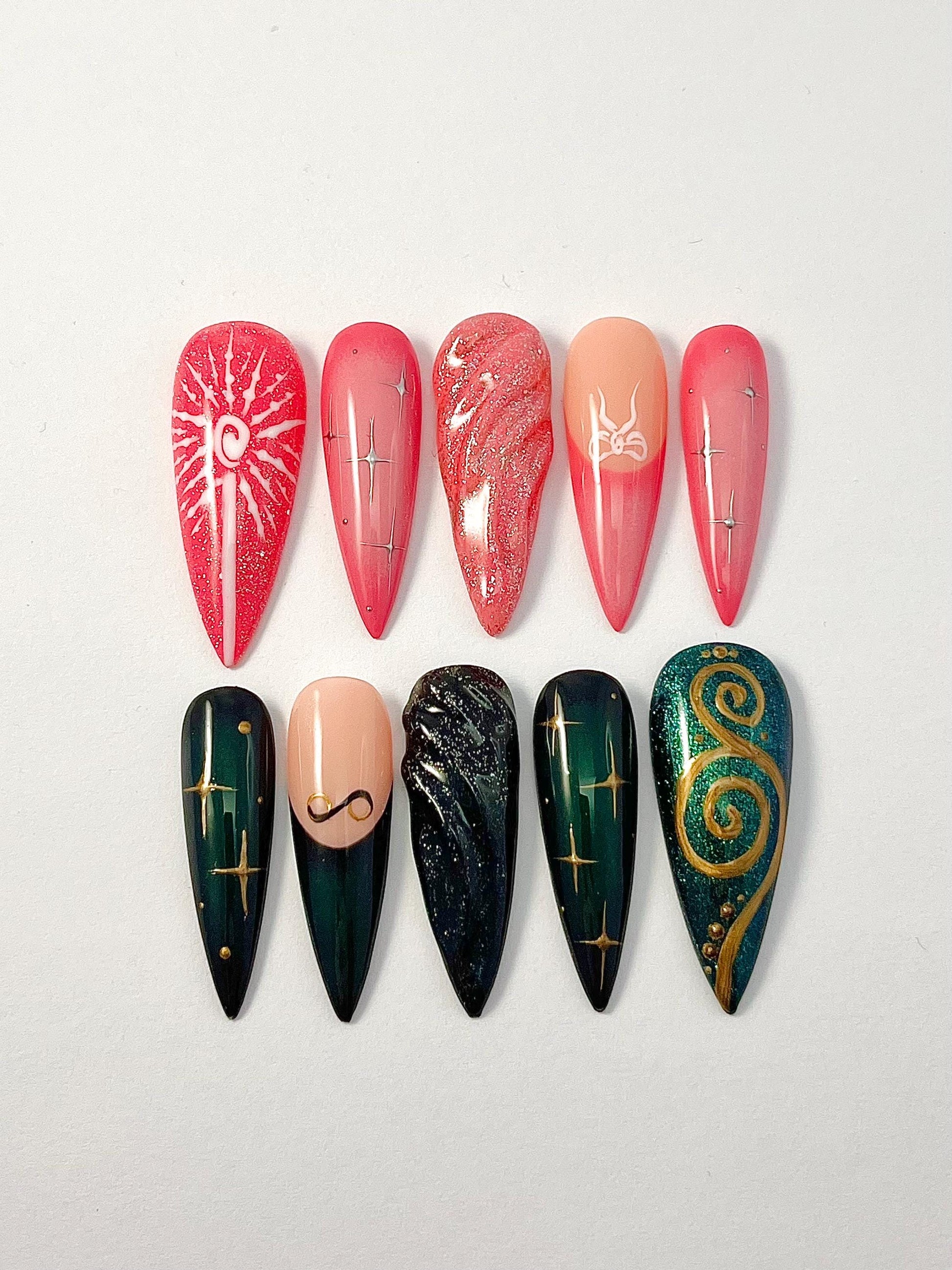 Elphaba & Glinda Wicked Inspired – Custom Handmade Press-On Nails