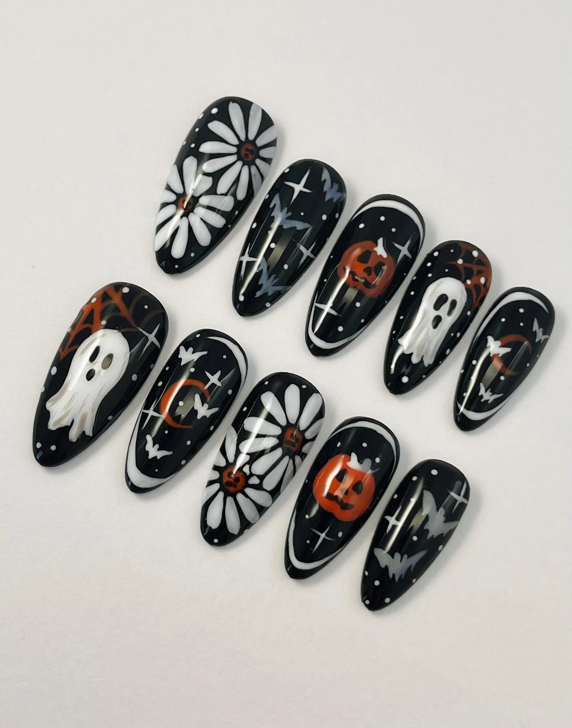 Halloween Ghost and Pumpkin Handmade Press-On Nails