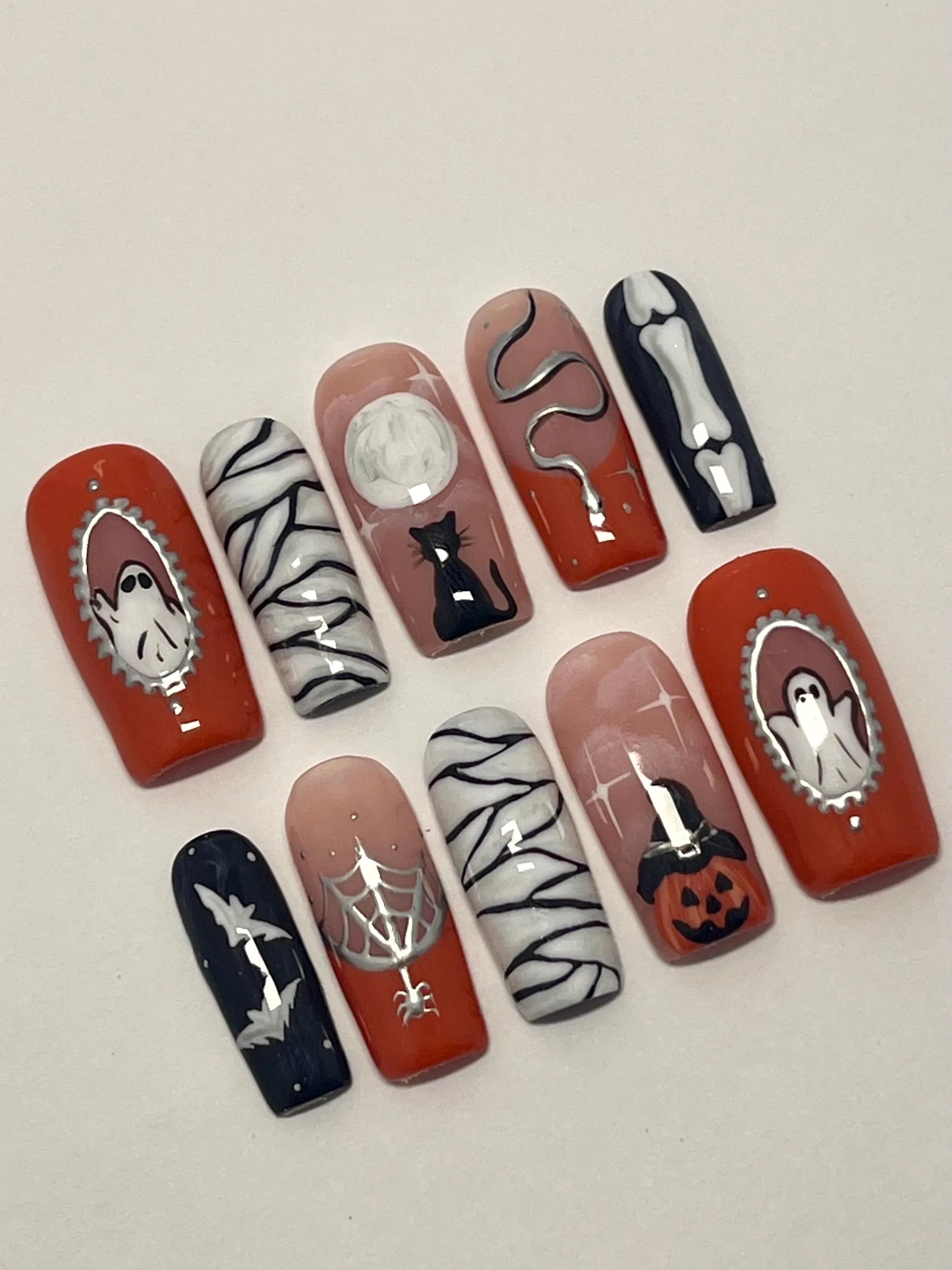 Spooky & Fun Style Fall Nails – Custom Handmade Press-On Nails